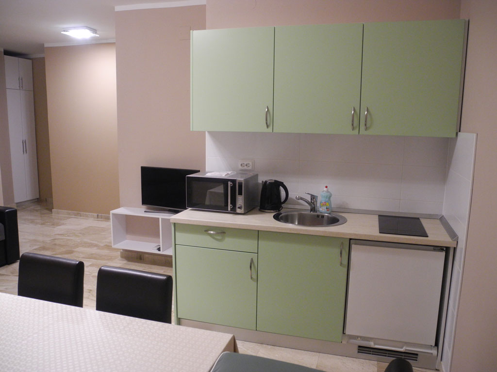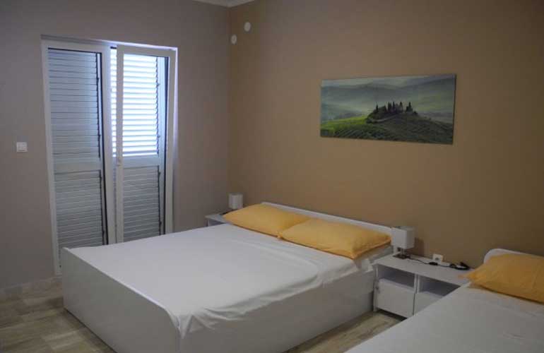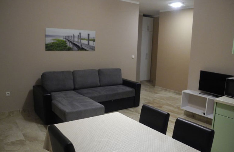 2 sobe, balkon prvi (11 m2), balkon drugi (9 m2) površina 55 m2, TV, SAT, klima, kuhinja (hladnjak, el.šporet sa 2 kola), broj osoba/lezaja 3+1